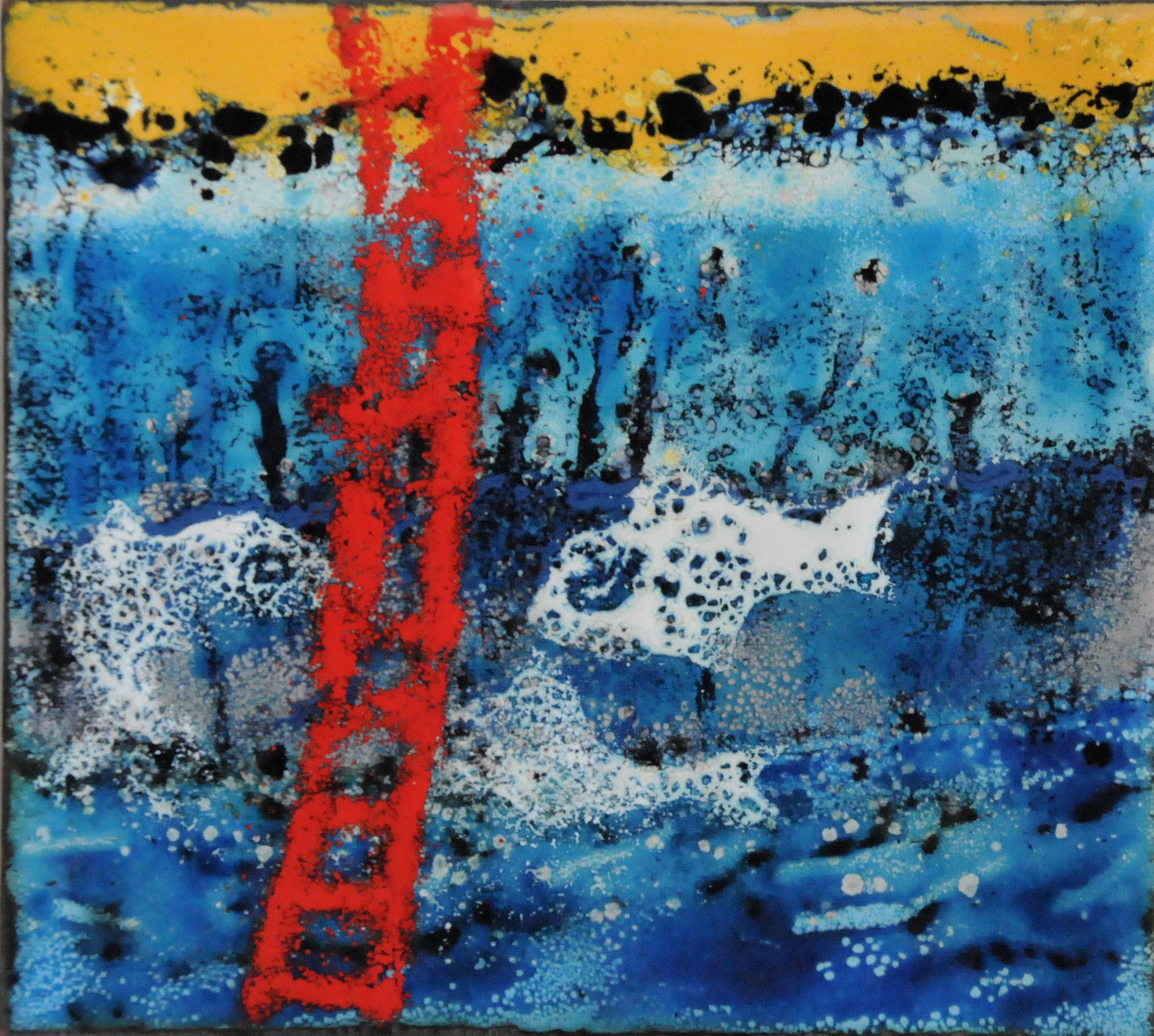fishes with ladder/ enamel on copper
