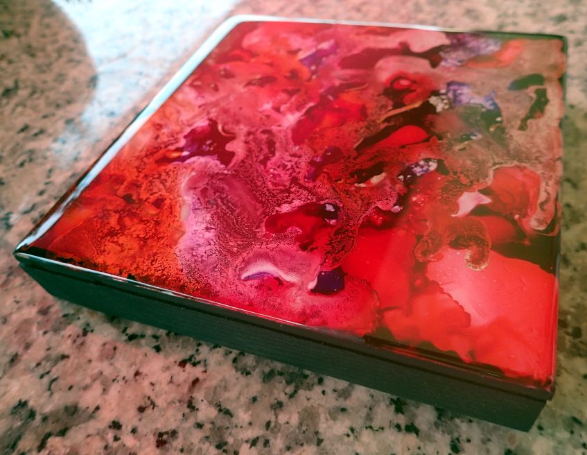 Published Juni 16, 2018 at 4135 × 3200 in lapland impressions (2) – botanical gem. mixed media: inks, metallic pigments, resin etc. on ceramic and wood.