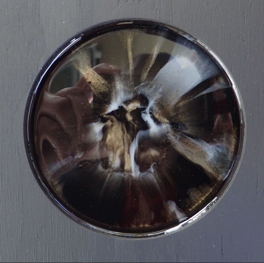Published April 3, 2018 at 2360 × 2354 in my anothermicroworld – gilded saga in black and white (1-10). mixed media: resin, acrylic paints, inks and metallic pigments, embedded in plywood.