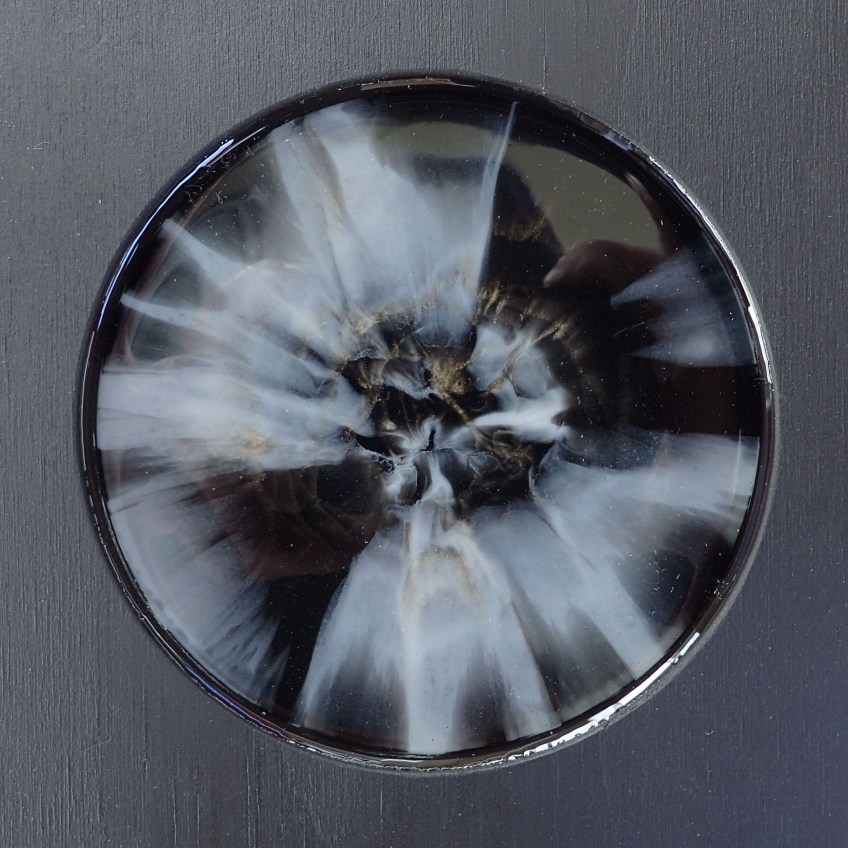 Published April 3, 2018 at 2502 × 2502 in my anothermicroworld – gilded saga in black and white (1-10). mixed media: resin, acrylic paints, inks and metallic pigments, embedded in plywood.