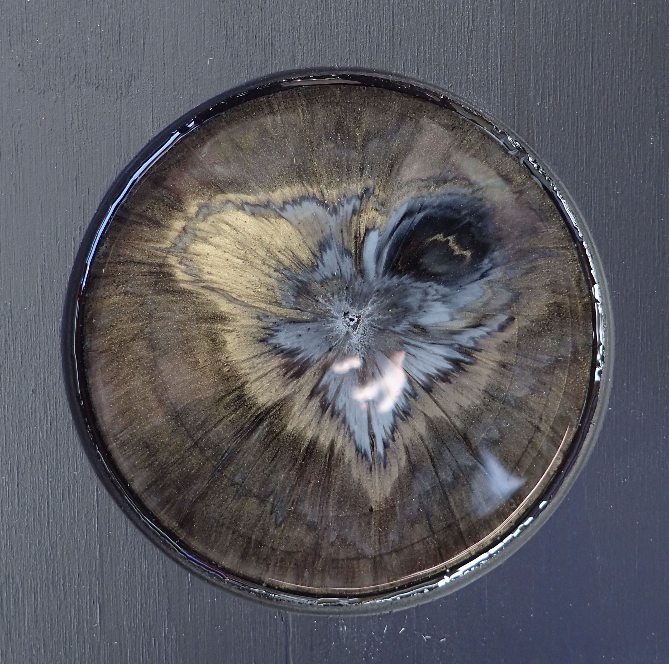 Published April 3, 2018 at 2536 × 2515 in my anothermicroworld – gilded saga in black and white (1-10). mixed media: resin, acrylic paints, inks and metallic pigments, embedded in plywood.