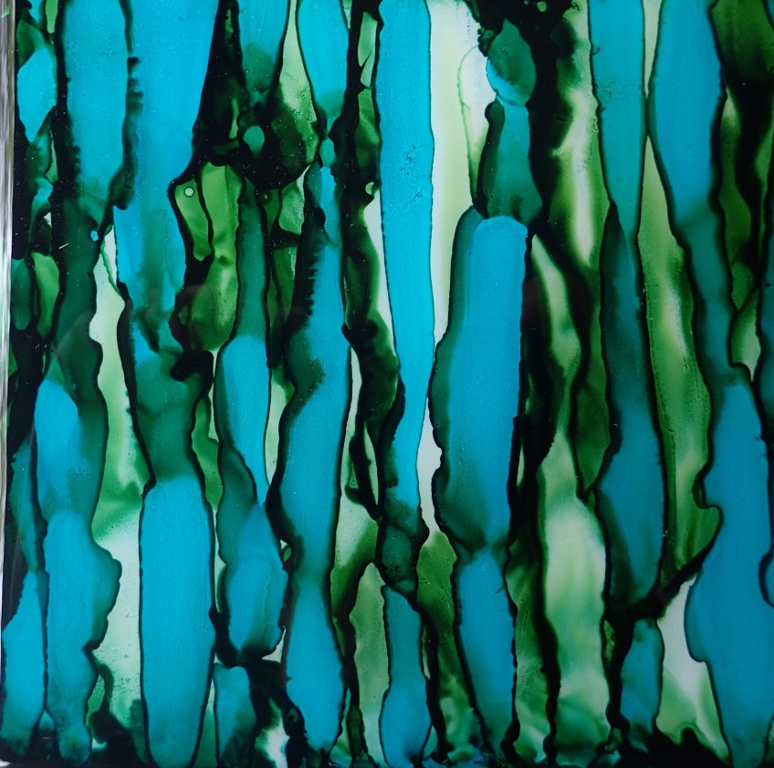 Published Juli 22, 2017 at 2971 × 2950 in lapland impressions: colour and sentiment, running down my spine. alcohol inks and resin on ceramic and wood. (sold) alcohol inks, resin