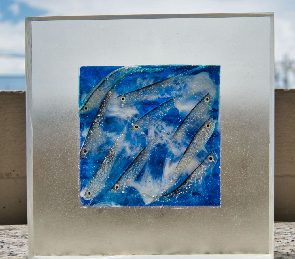 lapland impressions (6) – frosty. this work came to life last summer in my cottage in lapland: an experiment in highly playful way…and it was such fun working with these materials 🙌 mixed media: alcohol inks, alu-foil, layered resin on ceramic and wood.