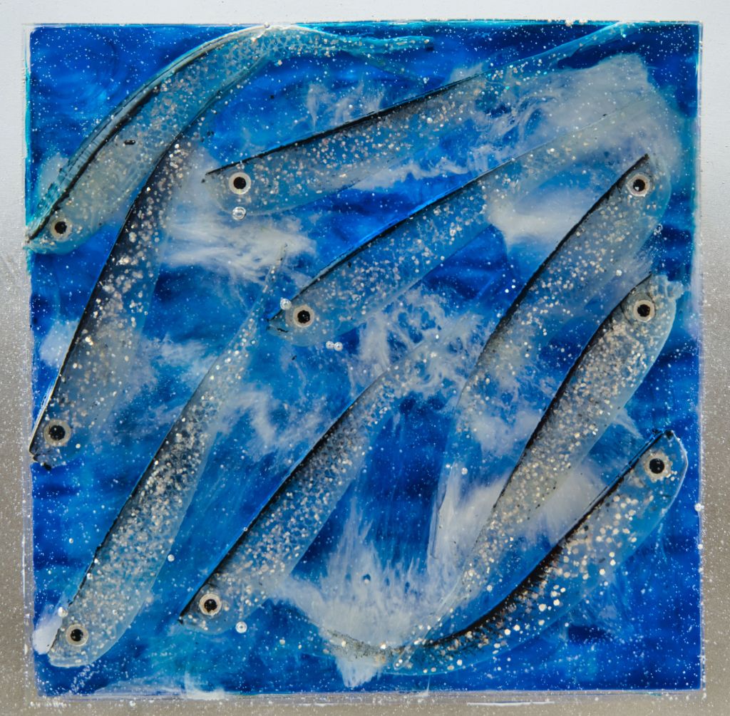 mixed media: bio resin, inks, acrylics and neodym magnets on ferromagnetic wooden frame.