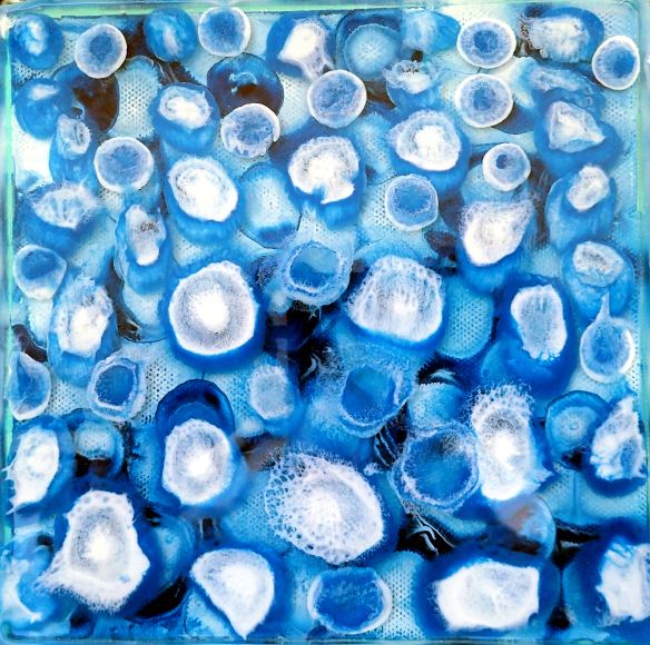 my anothermicroworld – geology of the soul (22). mixed media: acrylic paints, inks, mixatives and resin, all embedded in plywood (40 x 40 cm).